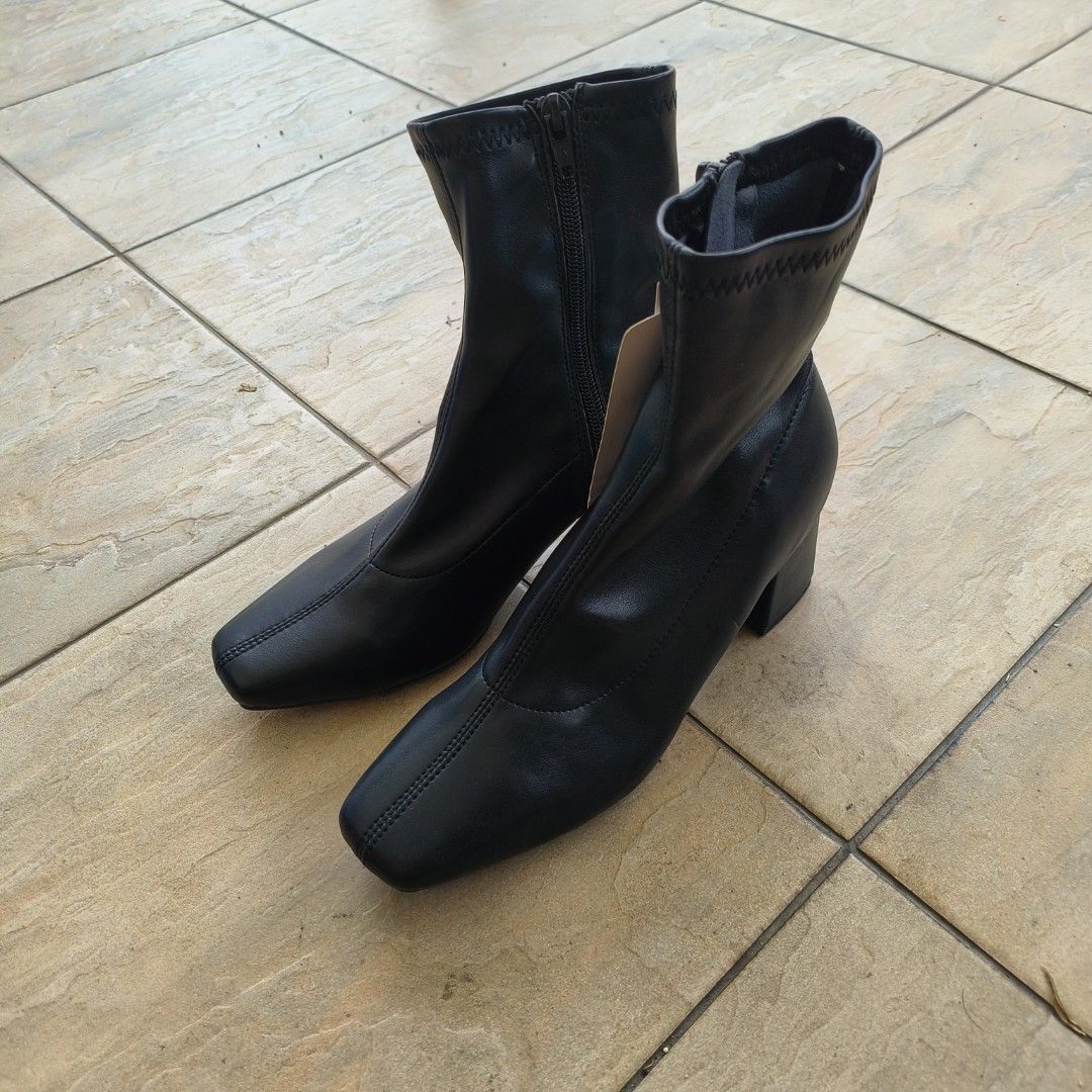 Amazon Com Shibever Women S Ankle Boots Heel Black Chunky Block Heels Slip On Almond Toe Boots Side Zip Leather Booties 5 Ankle Bootie